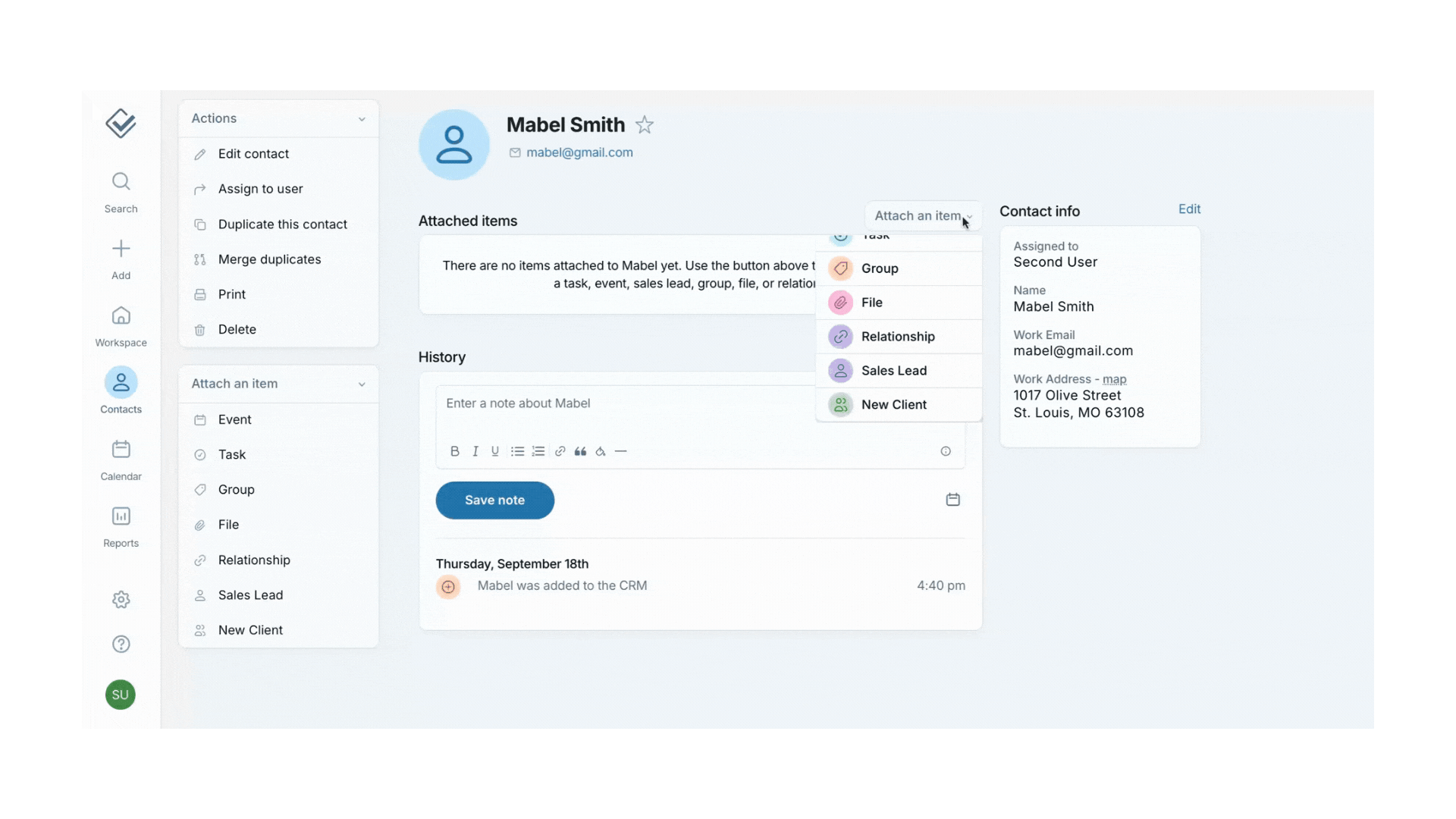 - 🗒️Use for those notes you leave again and again: Do you want a quicker way to leave a note like “Left Voicemail” that you might find yourself typing again and again? Create a “Voicemail” automation. When you click the automation, the “Left Voicemail” note will be automatically created. You can also add a task to that same automation that reminds you to try calling them again next week.