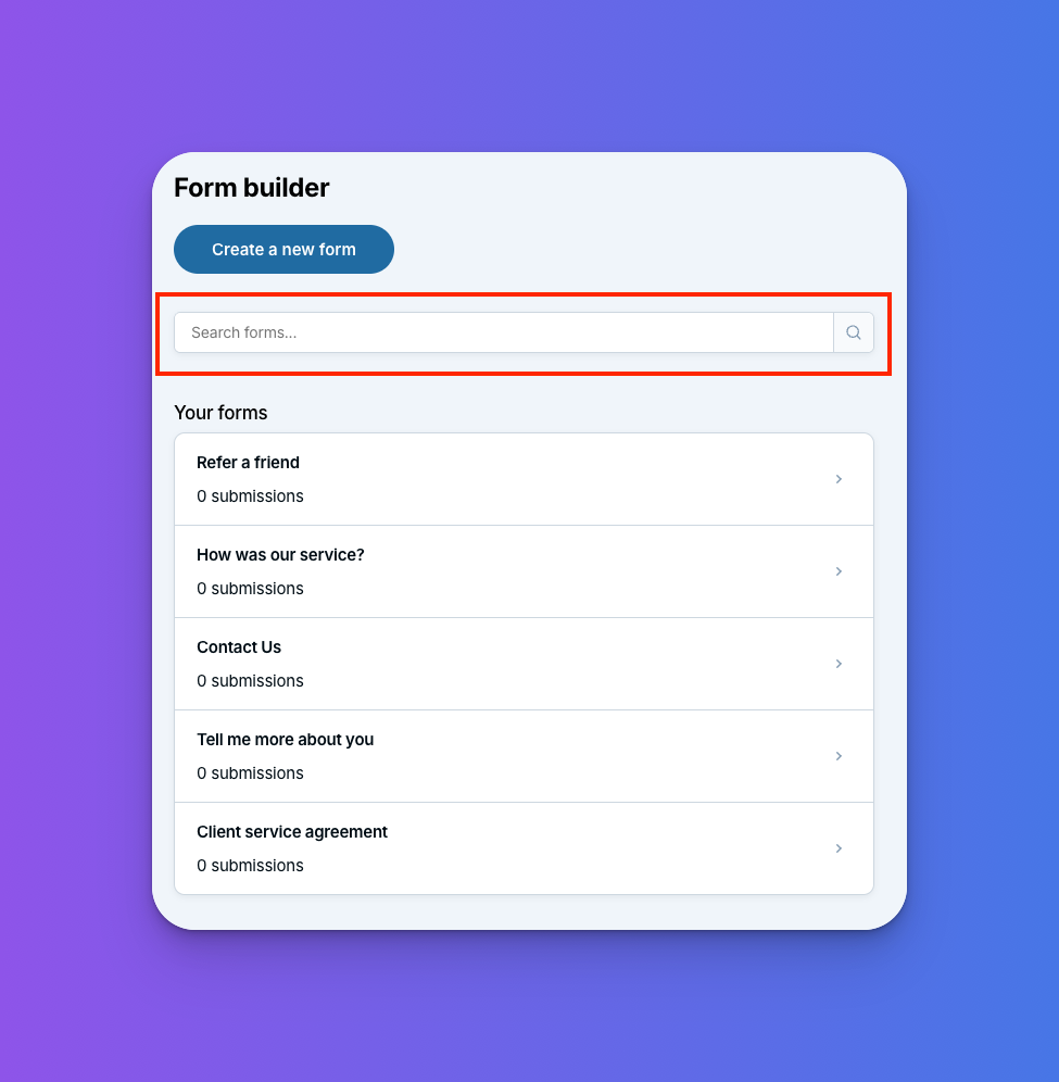 The forms page now has a search bar — making it much easier to find the right form when you have a lot of them. For example, if you manage multiple event sign-up forms, you can now track down the one you need in seconds rather than scrolling through a long list.