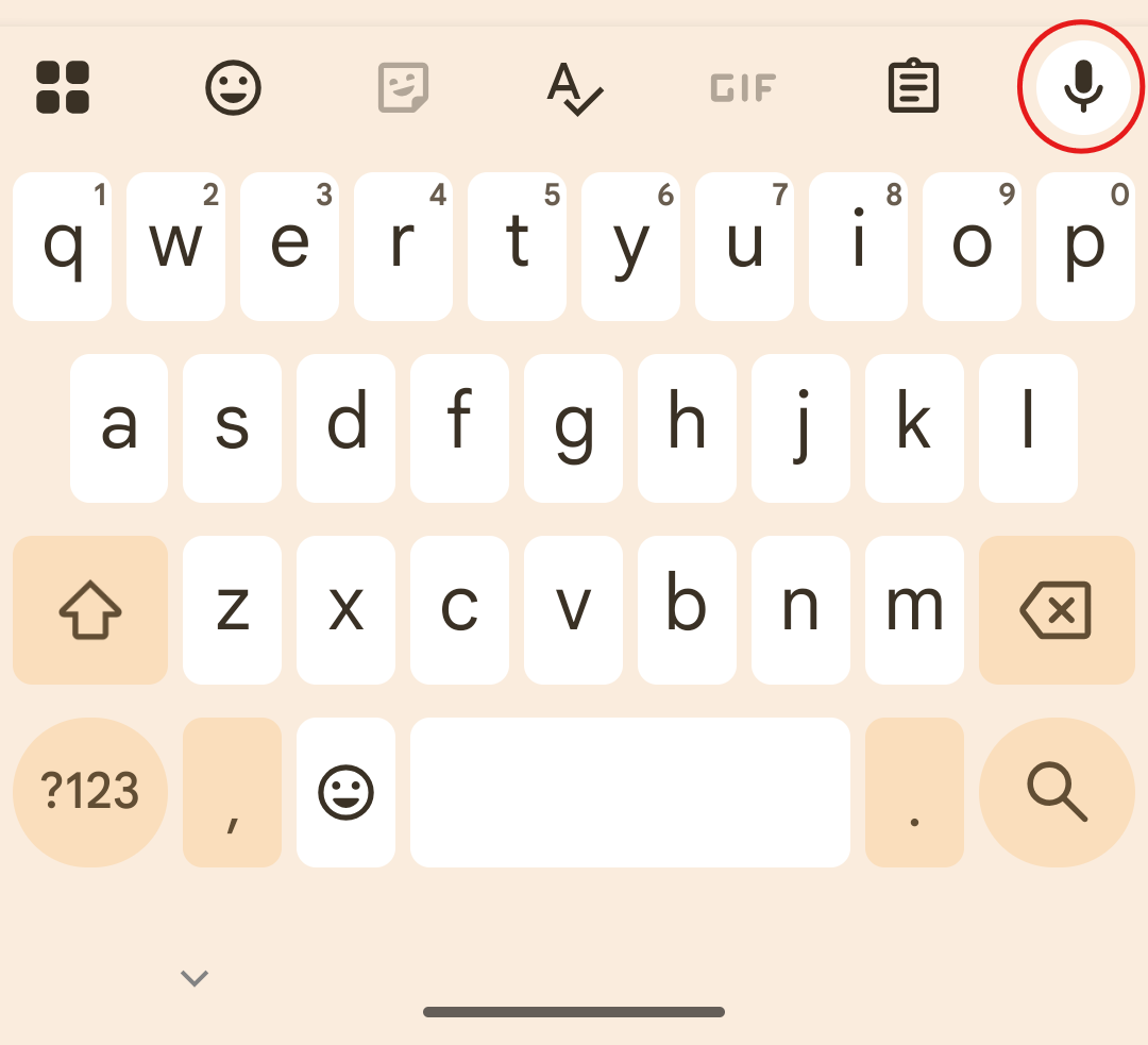And on an Android keyboard, the microphone feature can be found on the top right corner (Note: Android has many different keyboards so yours might look a little different):